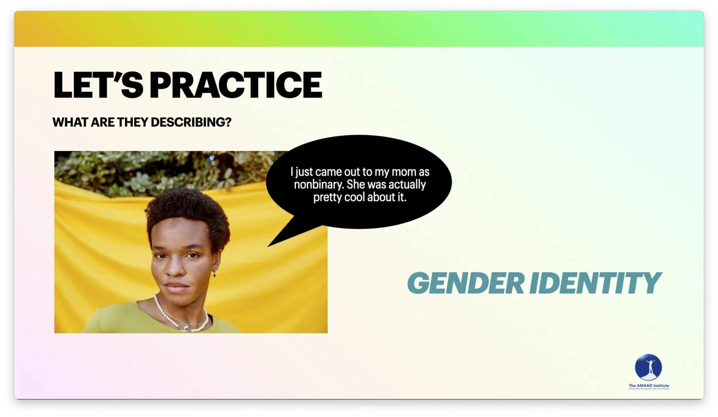 The group had varying levels of comfort and prior knowledge with the subject of LGBTQ+ terms and equity practices.